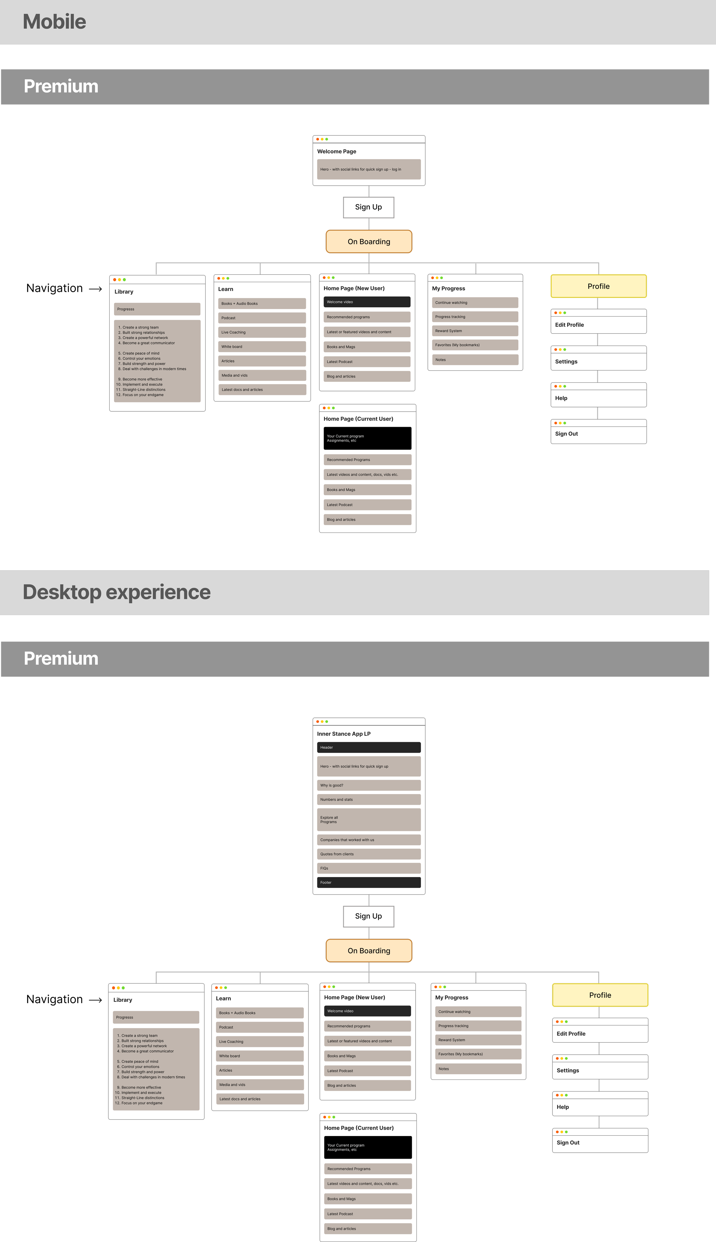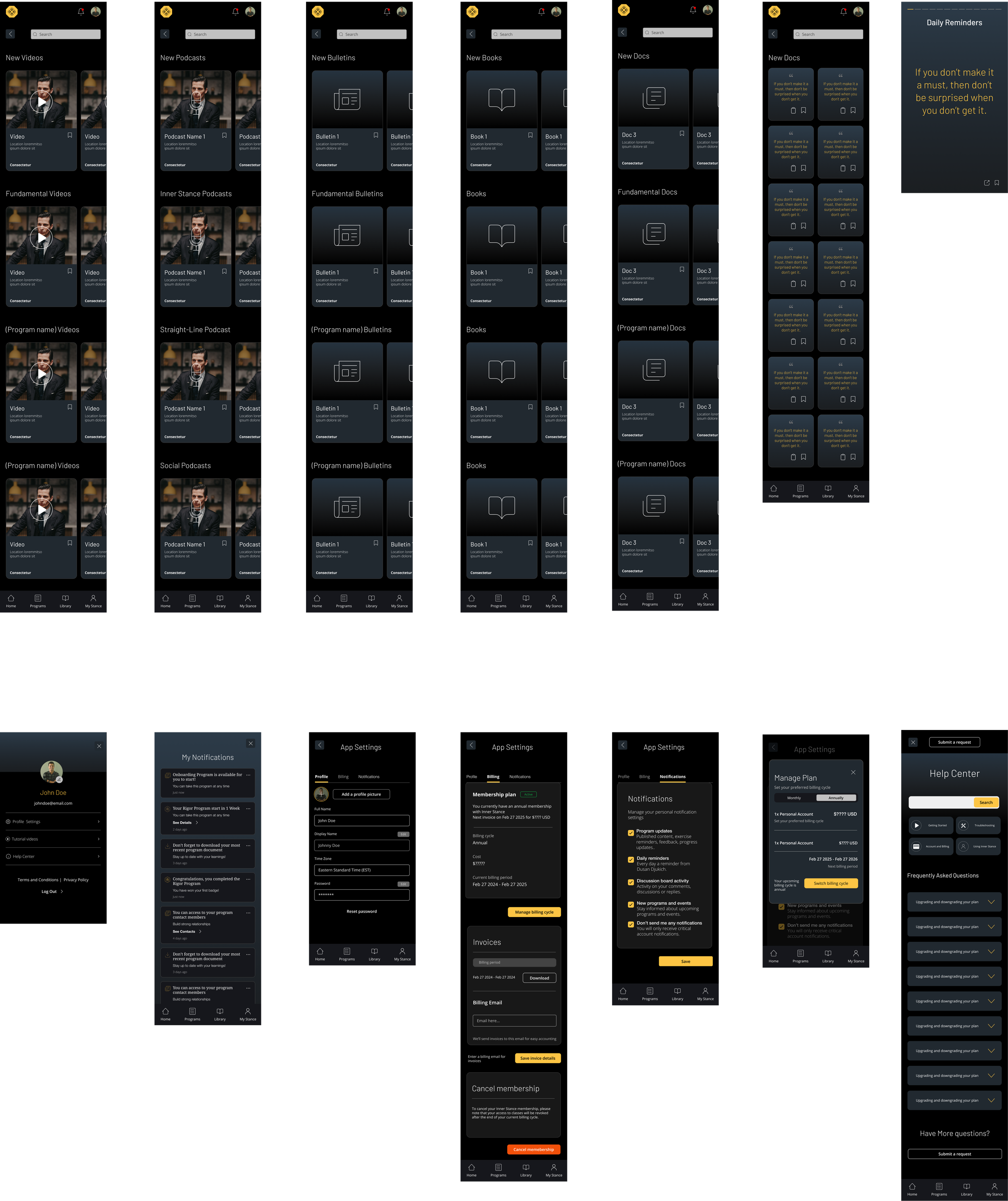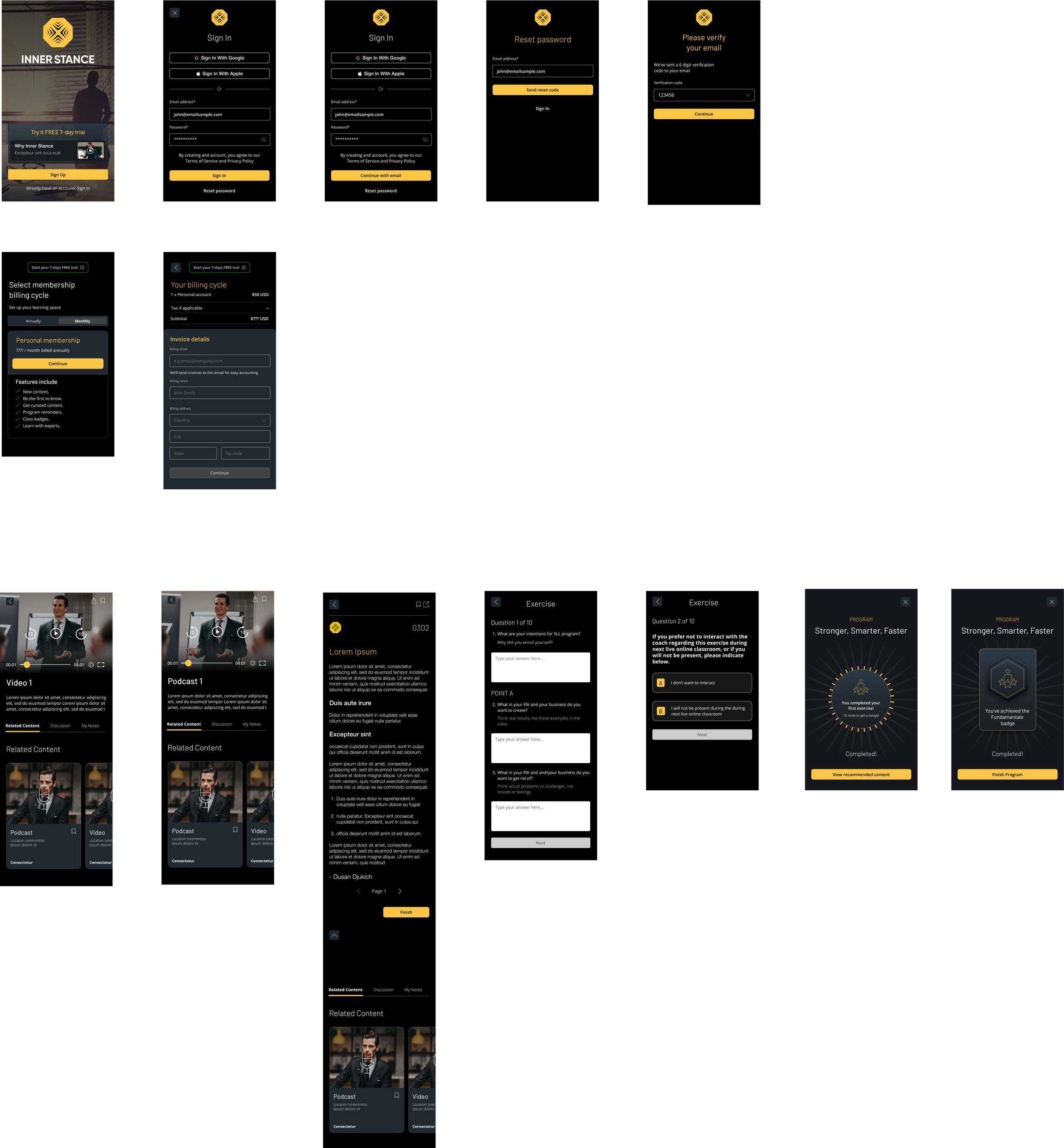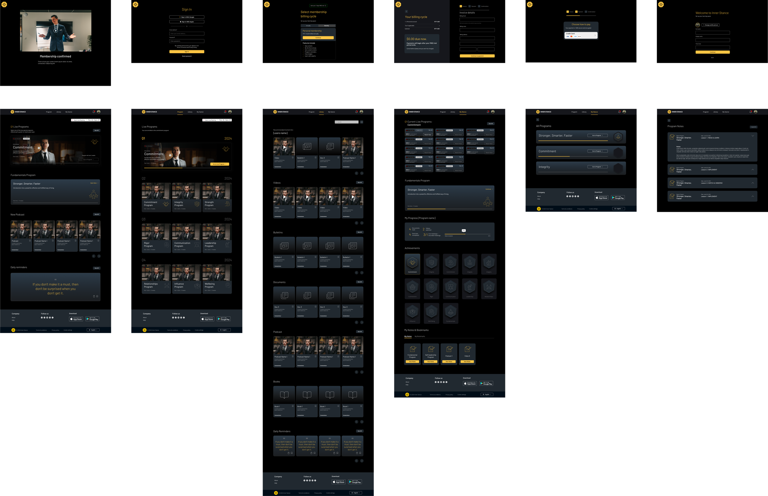 For the Inner Stance app, we began with thorough user research, asking key questions about how to create a seamless, engaging experience for users interacting with live meetings, tests, and educational content. We developed a detailed site map to structure the app, ensuring intuitive navigation from onboarding to course completion. Page content was carefully crafted to guide users through the program, while timely notifications and a rewards system helped maintain motivation. The result was an app with a modern, user-friendly interface that aligned perfectly with Inner Stance’s leadership training goals.