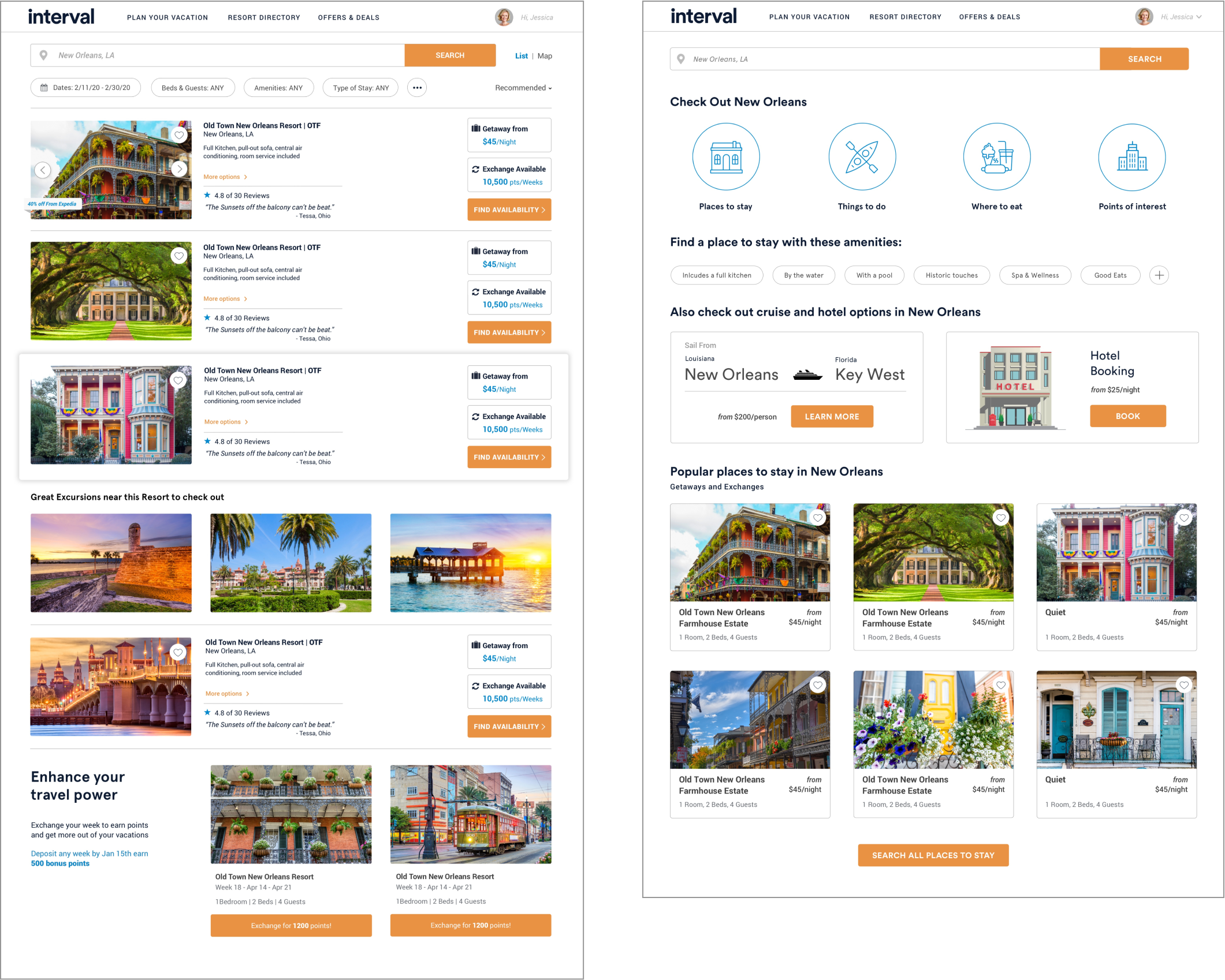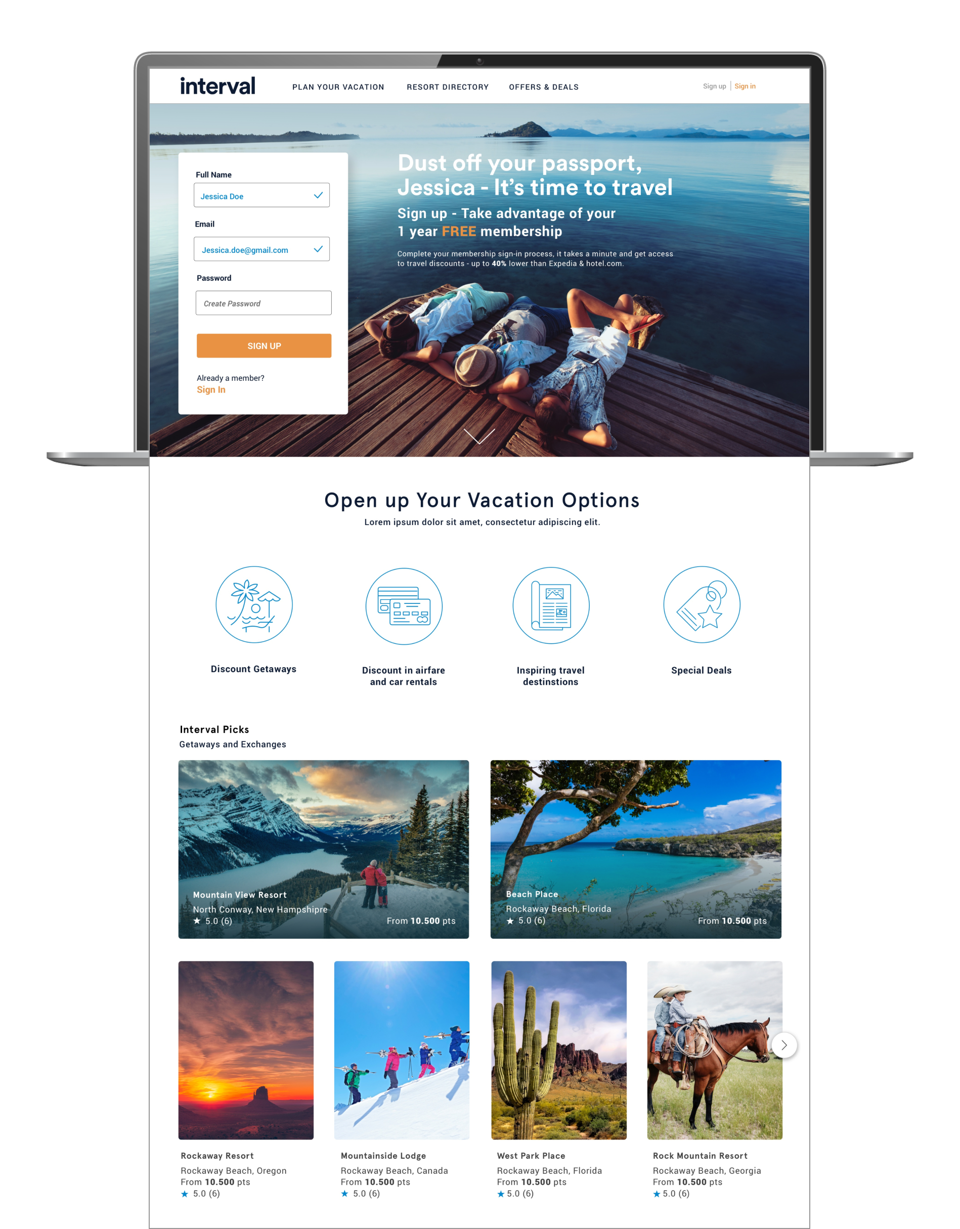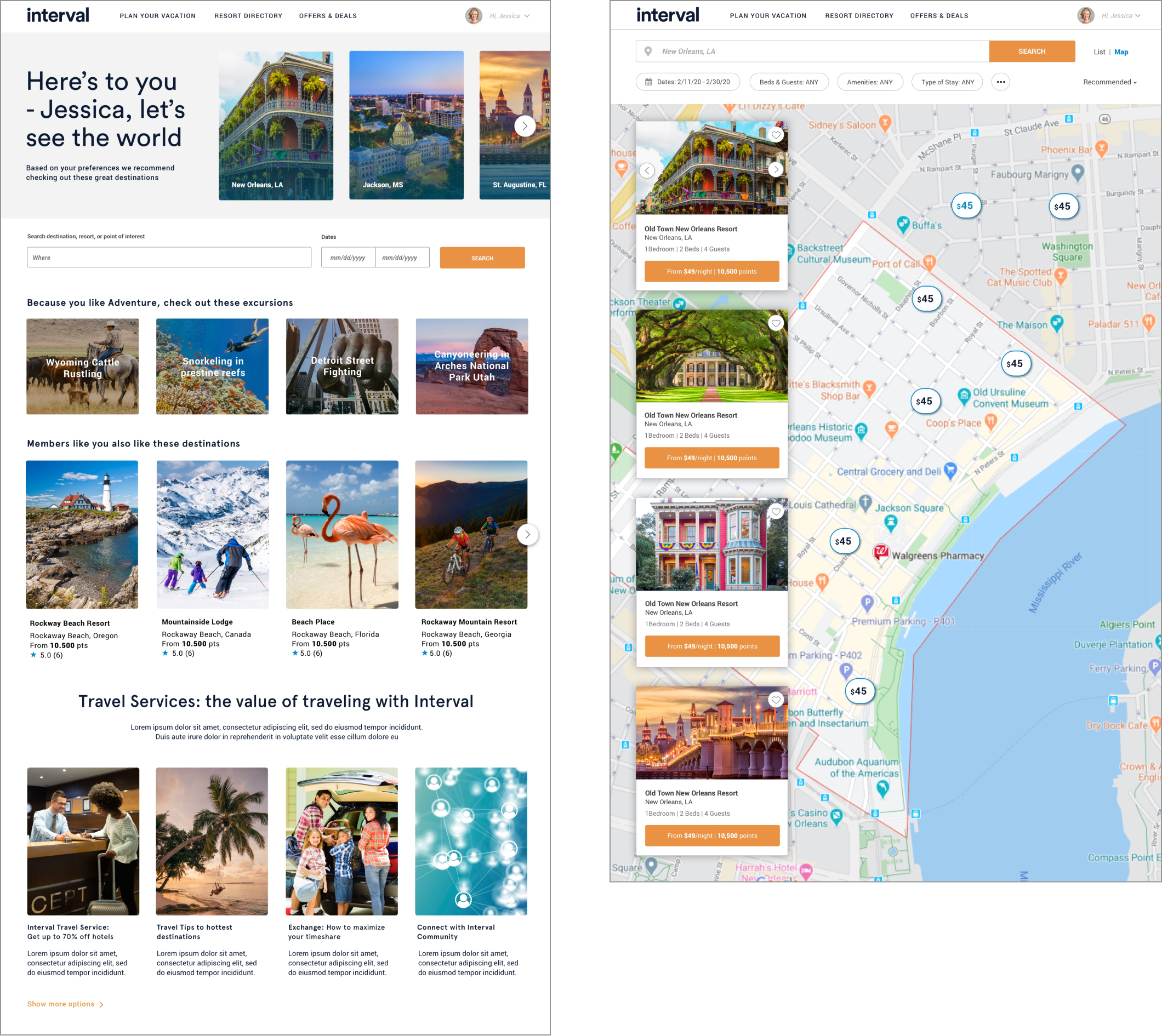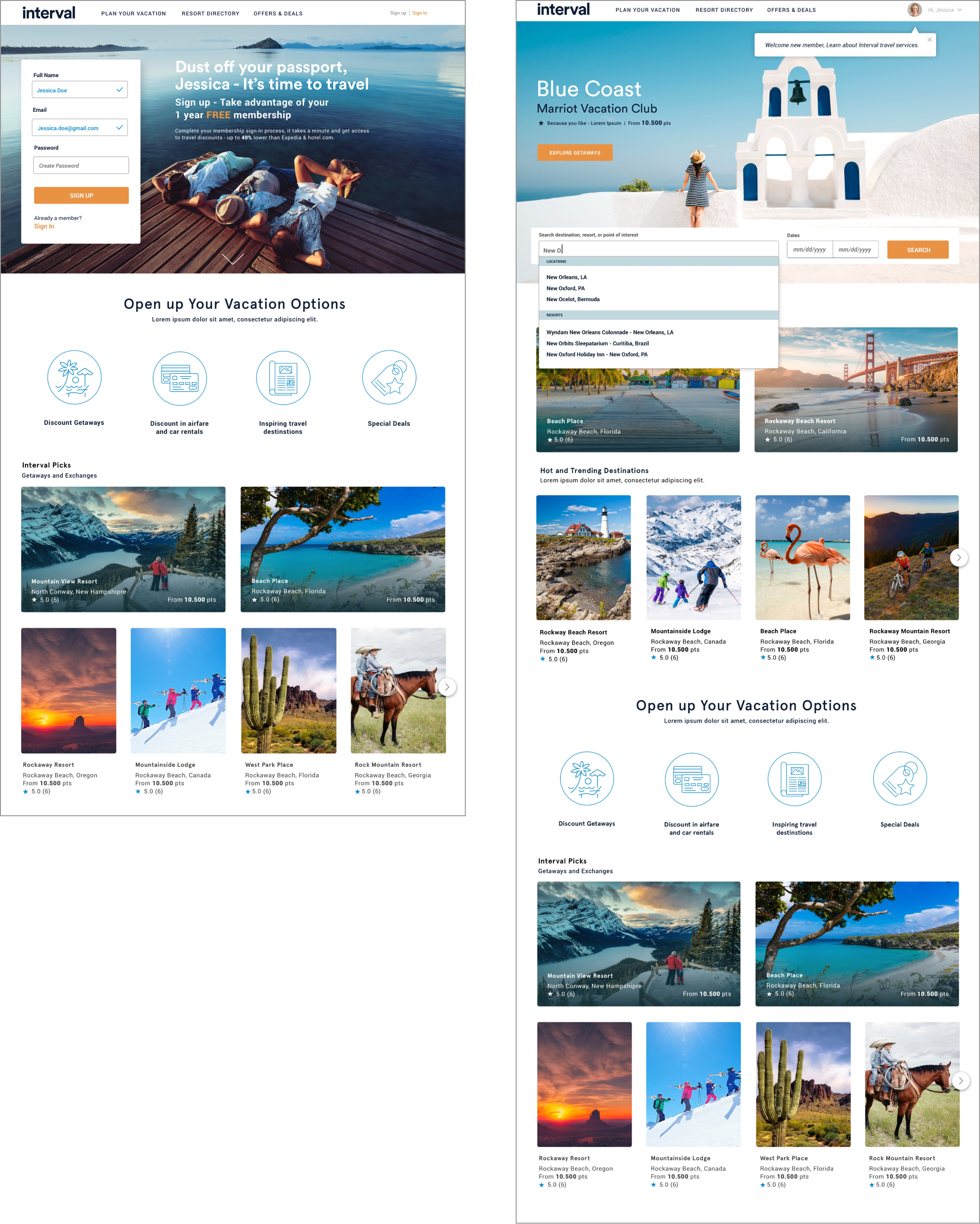 The goal was to refresh the brand and update all the social and digital experiences focusing on making the search-to-book flow feel familiar; Also ownership and ability to function differently than other online travel agency web experiences; nevertheless, members still consume marketplace brands to find the best value and get inspired; Interval should follow this and differentiate from competitors